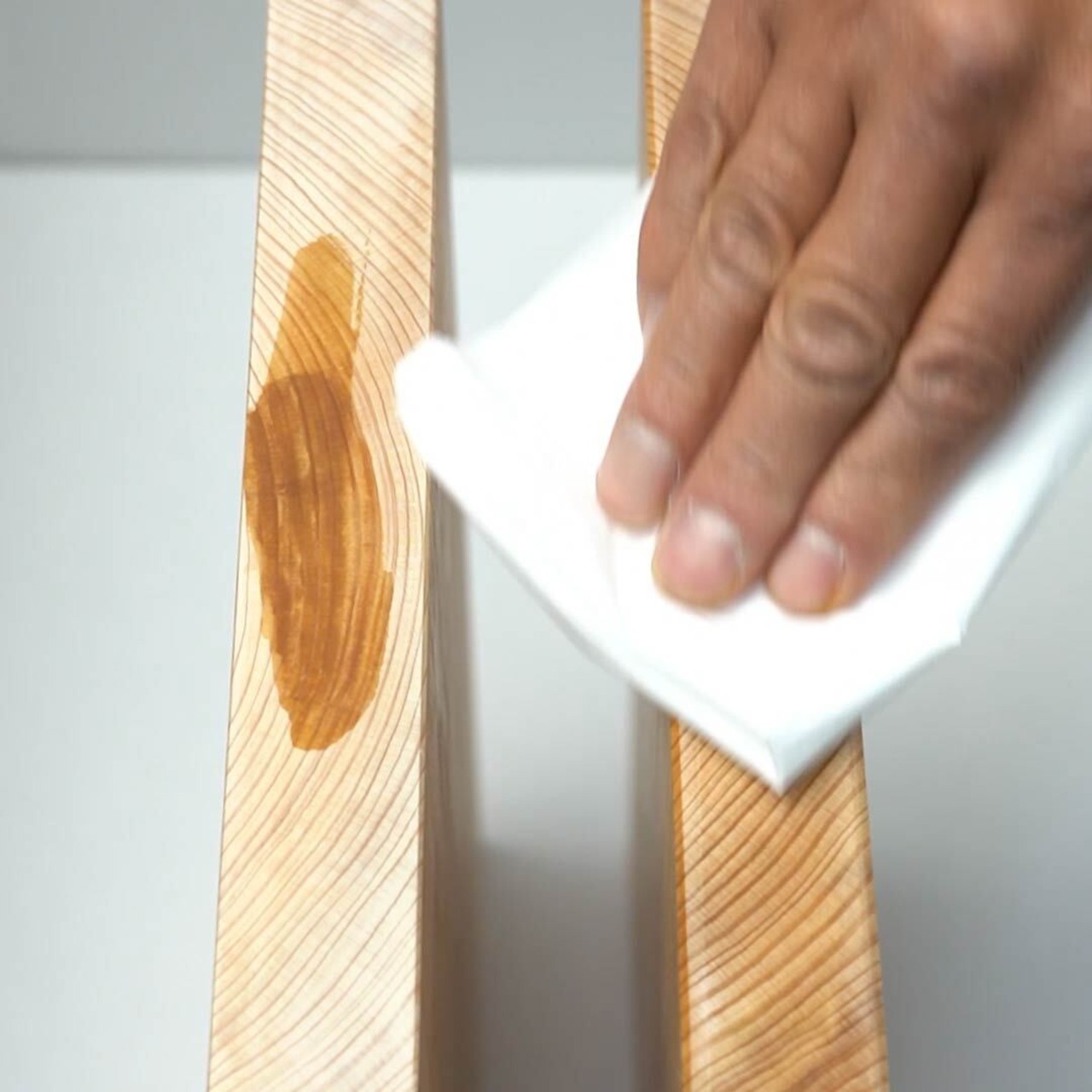 家具工房から生まれた木のための塗料「tatara撥水セラミック」は、表面に塗膜を作るウレタンやニスなどとは違い、高い浸透性をもって木の繊維奥深くまで染み込んで硬化する塗料であるため、木肌の自然な表情や質感、木の呼吸をそこないません。